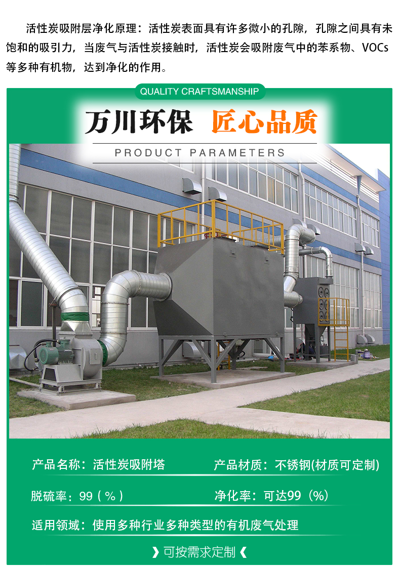 活性炭被廣泛應(yīng)用于工業(yè)上,再后來發(fā)明了活性炭吸附塔。活性炭吸附裝置是利用活性炭的原理設(shè)計(jì)而成的,活性炭表面具有許多孔隙,這些孔隙之間存在著吸引力,當(dāng)廢氣與活性炭接觸時(shí),可以吸附廢氣分子,所以在很多工廠都會(huì)看到活性炭吸附塔的身影。