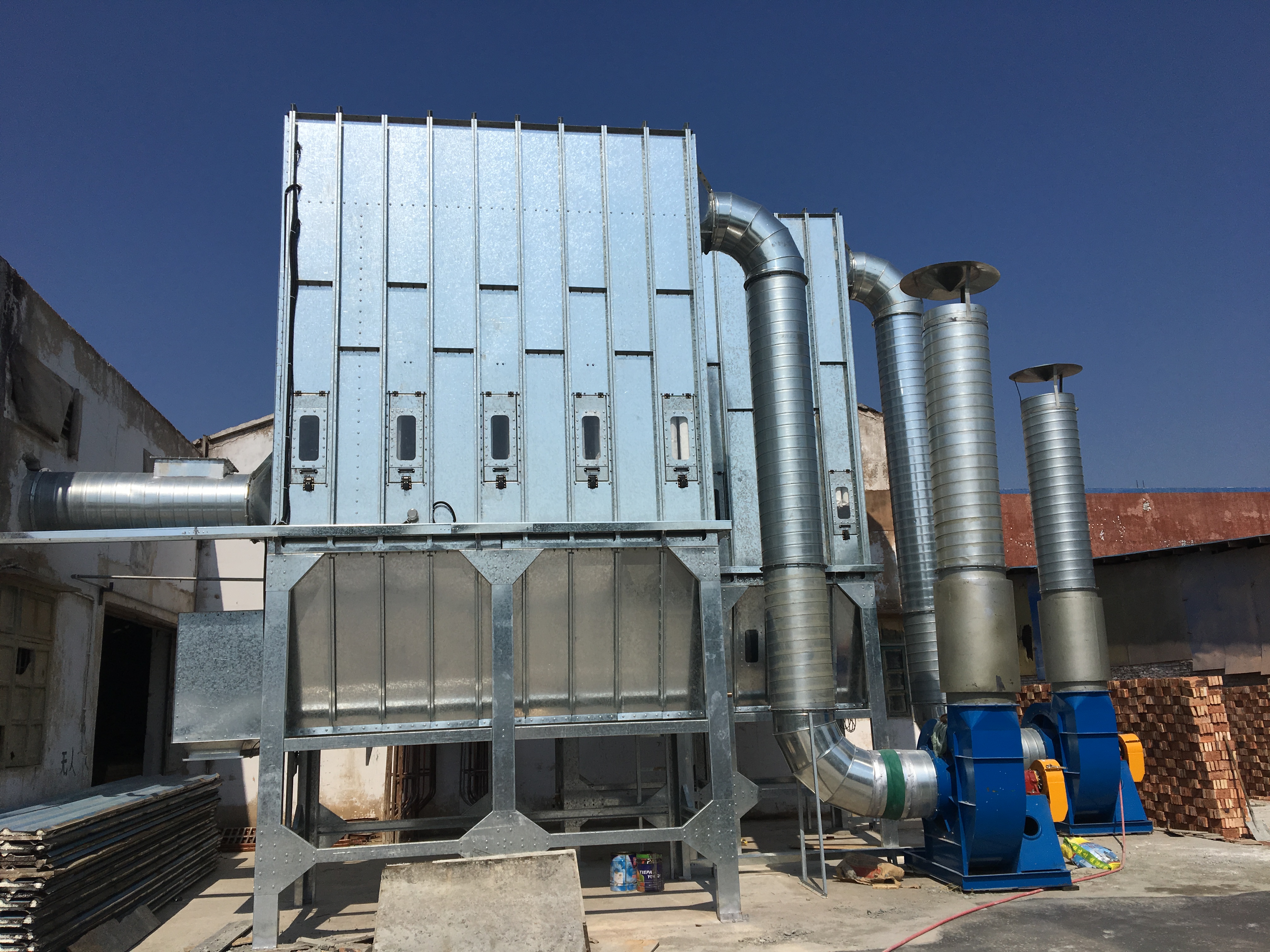 反吹系統安裝在除塵器上箱體內部的固定式機架上。