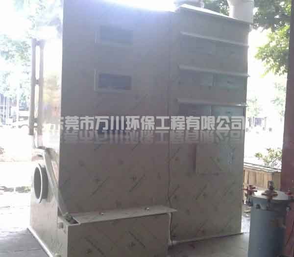 噴淋工藝在大氣污染處理上有著廣泛的應(yīng)用,,其原理是通過(guò)將水(或其他吸收液)噴淋廢氣,將廢氣中的水溶性氣體吸收或大顆粒成分沉降下來(lái),達(dá)到污染物與潔凈氣體分離的目的。根據(jù)不同的廢氣成分,配用不同的吸收試劑,處理效果更加好(如在酸性廢氣處理過(guò)程中加堿進(jìn)行中和吸收)。