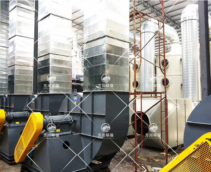 根據(jù)廠方提供的資料及現(xiàn)場(chǎng)勘察的情況。其噴漆廢氣的來(lái)源主要為無(wú)塵噴漆車(chē)間內(nèi)的5條自動(dòng)噴涂線。在生產(chǎn)過(guò)程中有噴漆,該工序產(chǎn)生了一定量含三苯有機(jī)廢氣和噴漆粉塵,該廢氣不僅對(duì)環(huán)境造成污染,而且對(duì)人體有較大的危害作用,同時(shí)也破壞了周邊的環(huán)境,造成了不良的影響,需進(jìn)行處理后排放。我們工程師分析了該廢氣的特點(diǎn)和以往的案例經(jīng)驗(yàn),采用了“水簾柜+噴淋塔+活性炭吸附塔”這套解決方案。