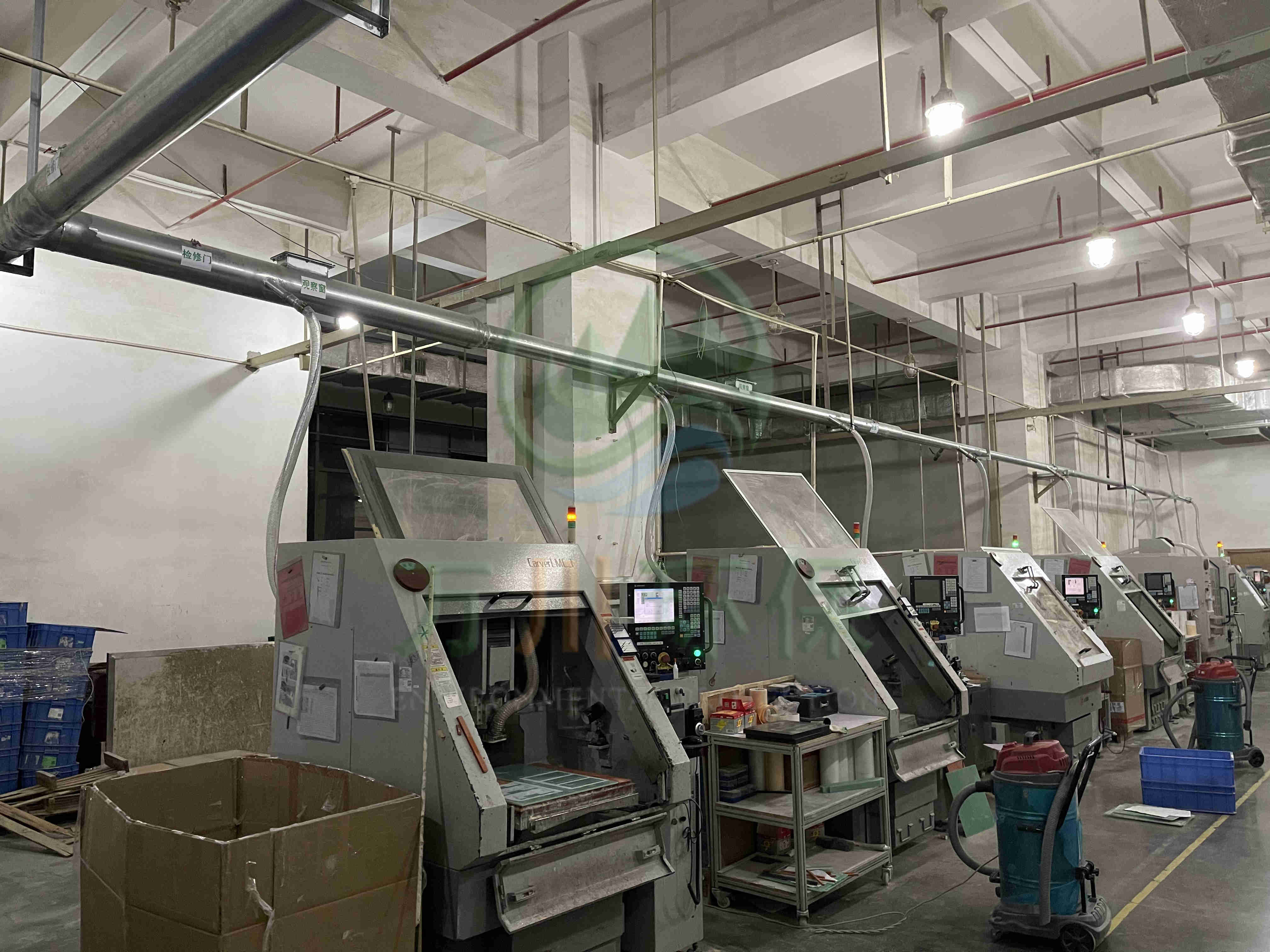 對(duì)車(chē)間11臺(tái)精雕機(jī)進(jìn)行中央集塵,改善車(chē)間環(huán)境,符合當(dāng)?shù)嘏欧艠?biāo)準(zhǔn)和防爆要求