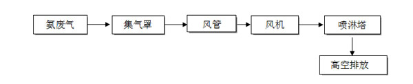 根據(jù)廠方提供的資料及現(xiàn)場勘察的情況,我司可以確定該廠的廢氣為“氨氣”。根據(jù)該廢氣的性質(zhì),萬川環(huán)保決定為該廠選定設(shè)備為--噴淋塔。(工藝簡圖如下)