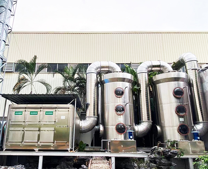 根據(jù)客戶需求和我司實地考察之后,最終采用‘兩級噴淋吸收法+活性炭吸附法’對其進(jìn)行處理。采用水噴淋一方面可以降溫,另一位方面能夠讓水吸收一部分的有機(jī)廢氣,降低后續(xù)活性炭吸附的負(fù)荷。